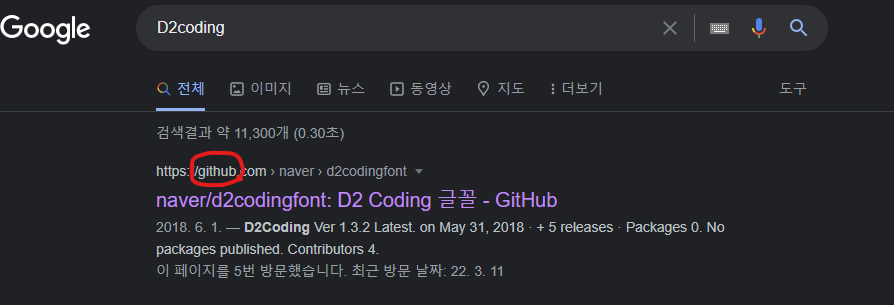 일단 구글에 'D2coding'이라고 검색한다.