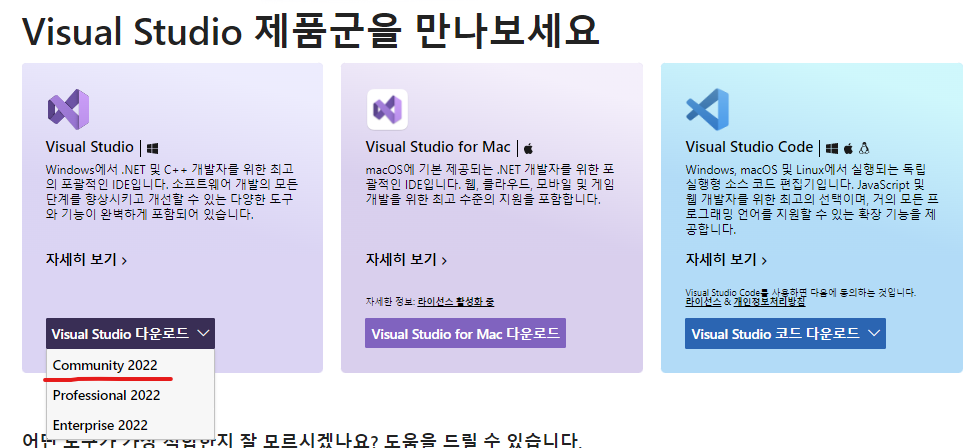 (전 윈도우 이기 때문에) 윈도우 로고가 있는 박스에서 'Community 2022'를 선택해 주세요.