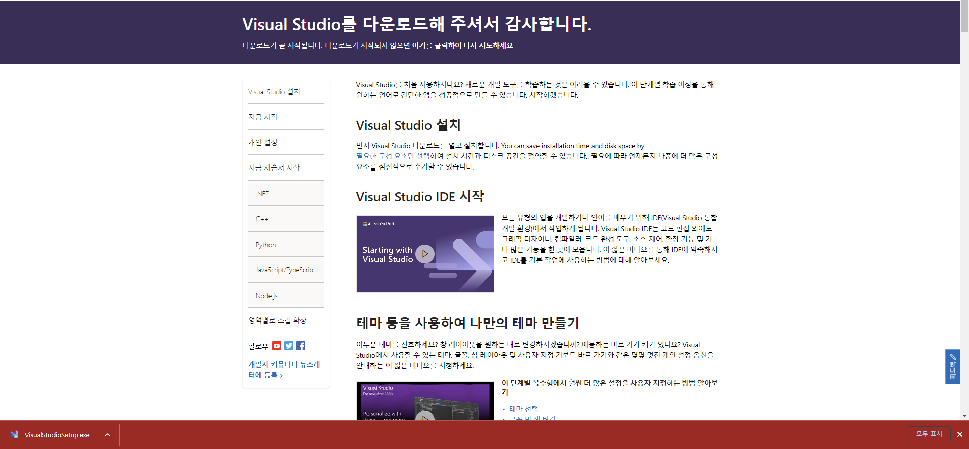 클릭을 하면 바로 setup 파일이 다운됩니다.