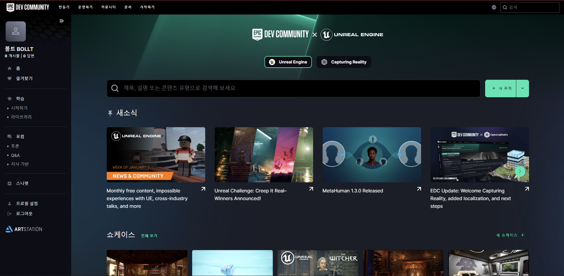 그래서 에픽 게임즈 개발자 커뮤니티에 있는데요,