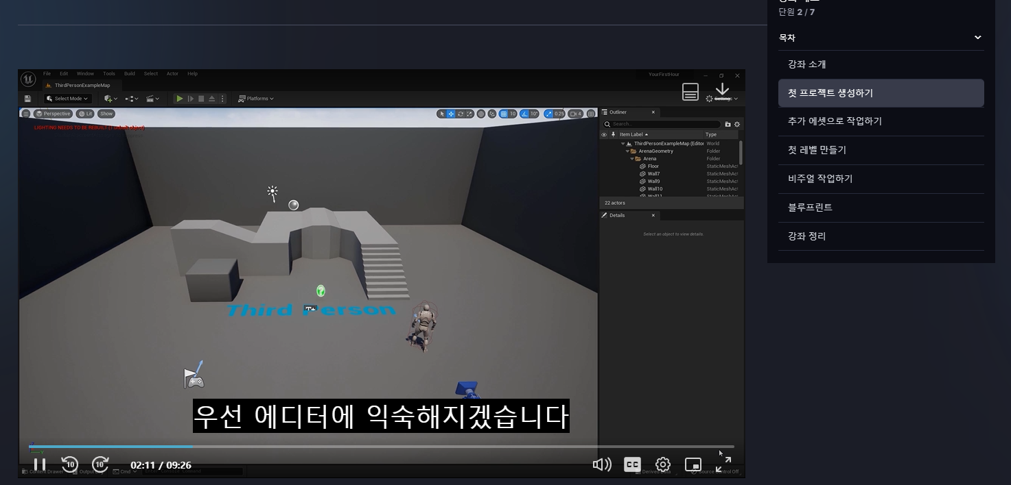 전 여기서 '언리얼 엔진 5와의 첫 시간: 소개'라고 쓰여있는 것을 보고 자습합니다.